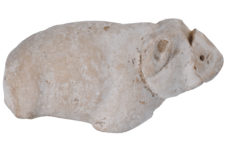 Figurka prawdopodobnie przedstawia niedźwiedzia. Jednak nie sposób stwierdzić tego z całą pewnością, gdyż poszczególne części ciała są słabo zaznaczone. Od wydłużonego obłego tułowia wyraźnie oddziela się jedynie głowa. Kształtem przypomina ona zaokrąglony na czubku i u podstawy stożek, do tułowia przylegający podstawą. Głowa osadzona jest na krótkiej, niewidocznej szyi. Podłużne żłobienia na górze przypominają uszy, małymi okrągłymi otworami zaznaczono oczy. Nogi zwierzęcia są bardzo krótkie, zaznaczone jedynie niewielkimi falistymi wypukłościami w dolnej części korpusu.